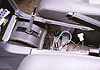 配線はシフトゲートから出ているODスイッチのリード線をシフトゲートの下から外に出し、 延長コードを継ぎ足した上でヒューズボックスの右側から下へ降ろし、オーディオコンソールのサイドパネルを通って、ダッシュボードの奥から予備スイッチパネルまで持ってきます。 以下はその作業手順です(前述した説明とは逆の順序になります)。