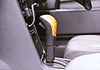 到着したばかりのバーチウッドシフトノブをわくわくしながら見てみると、心配していたシフトブーツに隠れた部分は何もなく丈の短かいものでした(写真左)。 一瞬これは駄目かと思いましたが、ノブさえ付けば後は何とかなると思い、さっそく940のシフトノブの取り外しに掛かったのですが、実はこの作業が今回最大の難関でした。とにかくきつく入っているためちょっとやそっとでは引き抜けないのです。 力を入れる際つい左右に振ってしまいそうになりますが、サービス担当者曰く「絶対に左右には振らないようにして下さい」。 結局センターコンソールにまたがるようにしてはじめて抜くことができました。 ODスイッチは爪を使って簡単に引っ張り出せるのであらかじめシフトノブから切り離しておけば良かったのですが、ODスイッチを外せるだけのリード線が出てこなかったのでそのまま抜いてしまいました。 案の定スイッチの端子を壊してしまいました。 しかし、シフトノブは一度抜いてしまうと、次回からは運転席に着座した姿勢で抜けるようになりますのであとは楽になります。